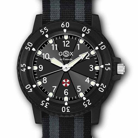 Nous commençons avec une montre, réalisée par GSX, fabricant qui a déjà collaboré maintes fois avec Capcom par le passé pour faire des montres sous licence Biohazard.